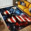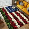 Golden Diamond Velvet Dot Plush 4th of July American Flag Design Soft Area Mat Non Slip Rubber Backing Living Room Bedroom