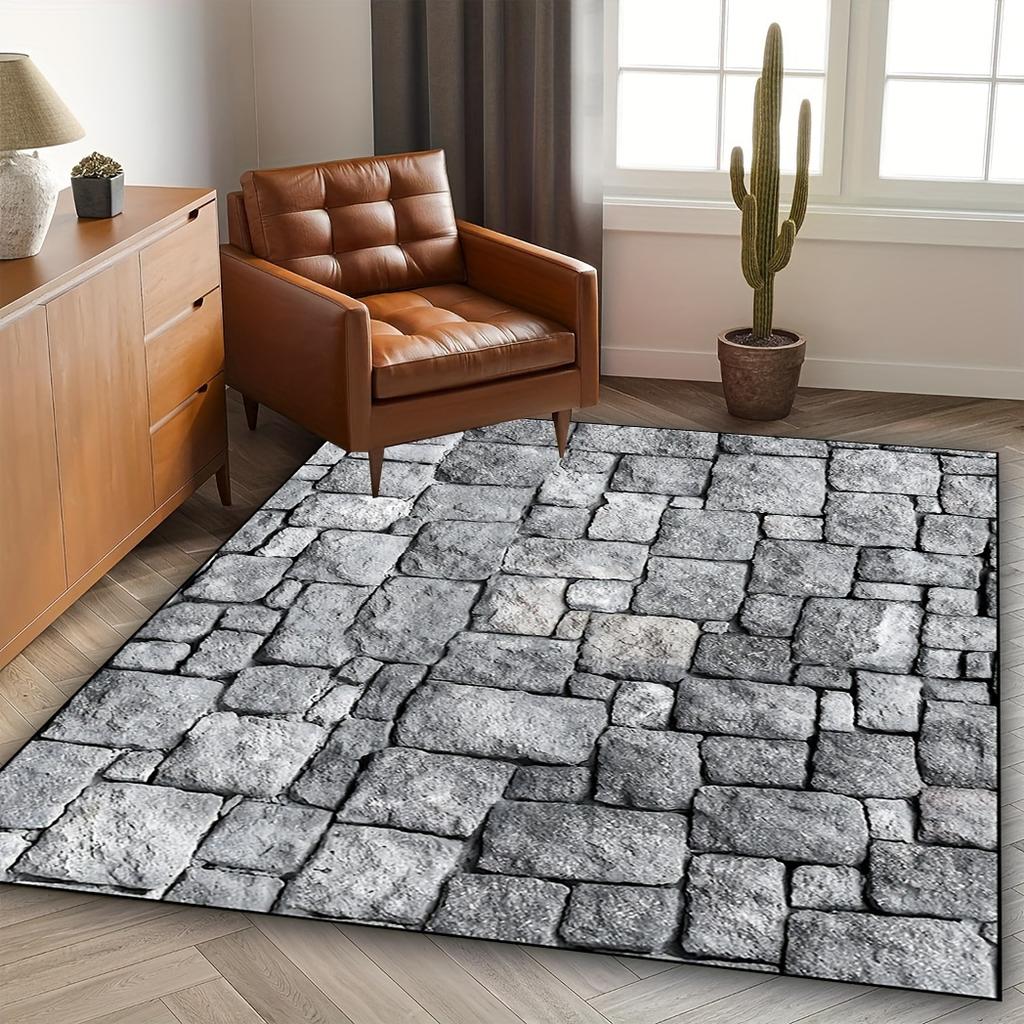 Stone Brick Pattern Rug - Non-Slip Washable Polyester Mat, Indoor/Outdoor Rectangular Pad for Entryway, Bedroom, Living Room
