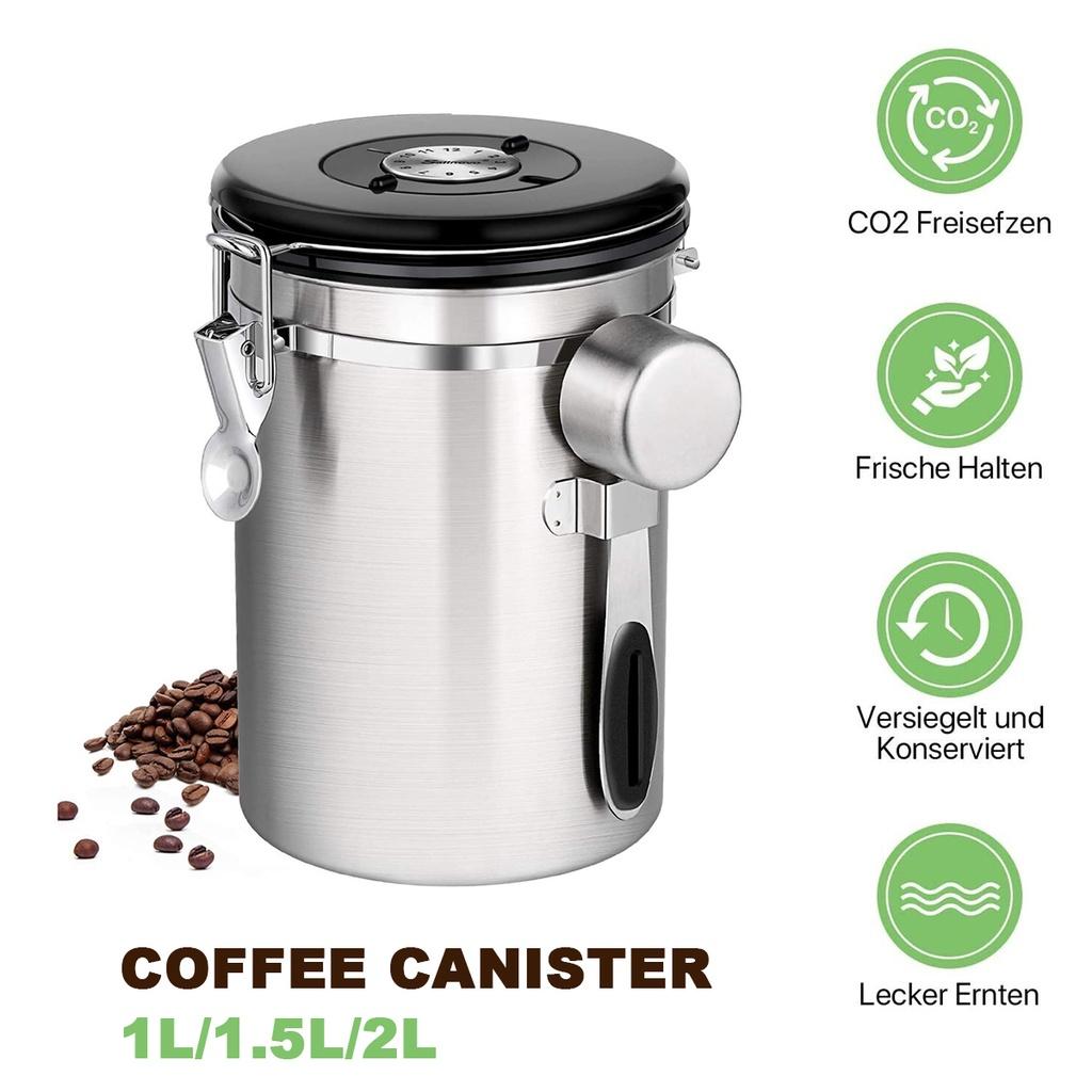 -【Premium Materials】 - Airtight coffee storage containers are scentless food grade stainless-steel built coffee containers maintaining fresh aromas of coffee. Simply designed clips hold coffee canister airtight. Coffee beans container is washable for continued shine.
