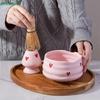 Matcha Whisk Set with Pink Heart Design, Matcha Set Includes Matcha Bowl, Matcha Whisk and Whisk Holder, Scoop, Sifter, Perfect
