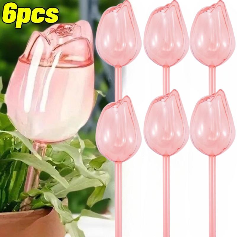 1-6PCS Pink Tulip Plant Watering Balls Indoor Outdoor Automatic Drip Irrigation System Glass Insert Self-watering Bulbs Garden Supplies