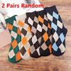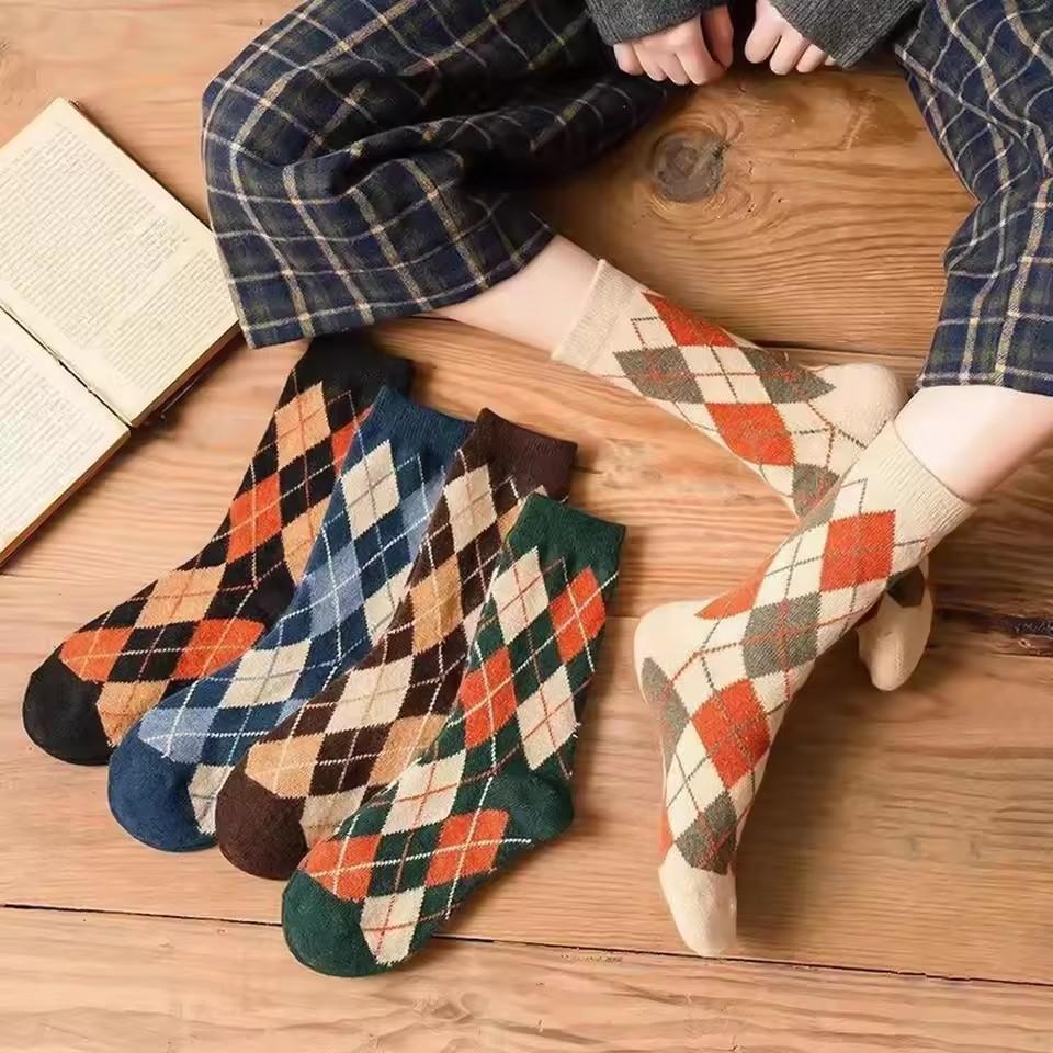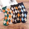 Women's Colorful Diamond Lattice Striped Socks Quality Plaid Diamond Pattern Argyle Geometric Harajuku Cotton Medium Tube Socks