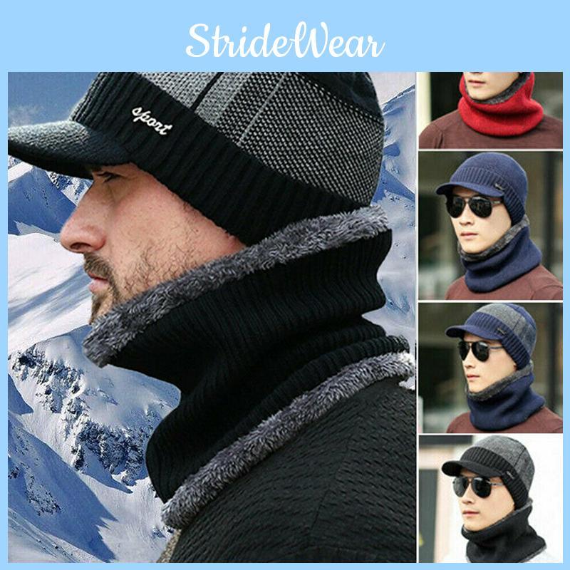 Soft Men Unisex Winter Warm Hat Knit Visor Beanie With Cozy Fleece Lining**