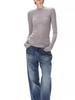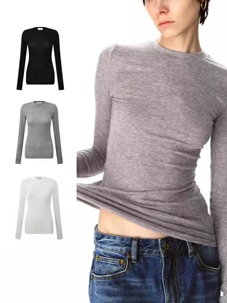 חולצת טי לנשים, גזרה צמודה, רטרו, קלת משקל, צמר אמריקאי, טנסל, שרוולים ארוכים - שכבת בסיס ידידותית לעור ומתיחה