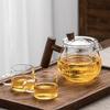 ידית צד להכנת תה סביב הכיריים, קומקום זכוכית בורוסיליקט ידית עץ, עמיד בטמפרטורה גבוהה בית משרד