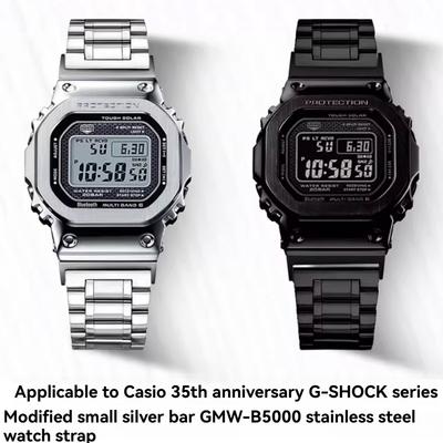 שעון נירוסטה מוצק משופר עם בלוק כסף קטן לסדרת GMW-B5000 של Casio ל-35 שנה לשעון G-SHOCK