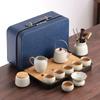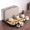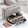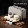 A portable, modern Japanese-style tea set featuring ceramic teacups and teapot, complete with a stone tea tray. Ideal for travel, office, or outdoor use, this set boasts a frosted finish for a sleek, minimalist look.