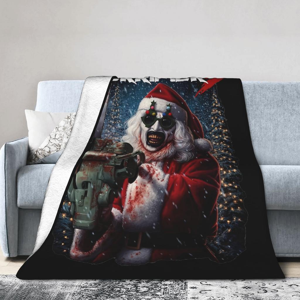 Terrifier 3 Merry Christmas Blanket Fleece Print Clown Movie Horror Multifunction Soft Throw Blanket for Sofa Office Bedspread