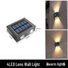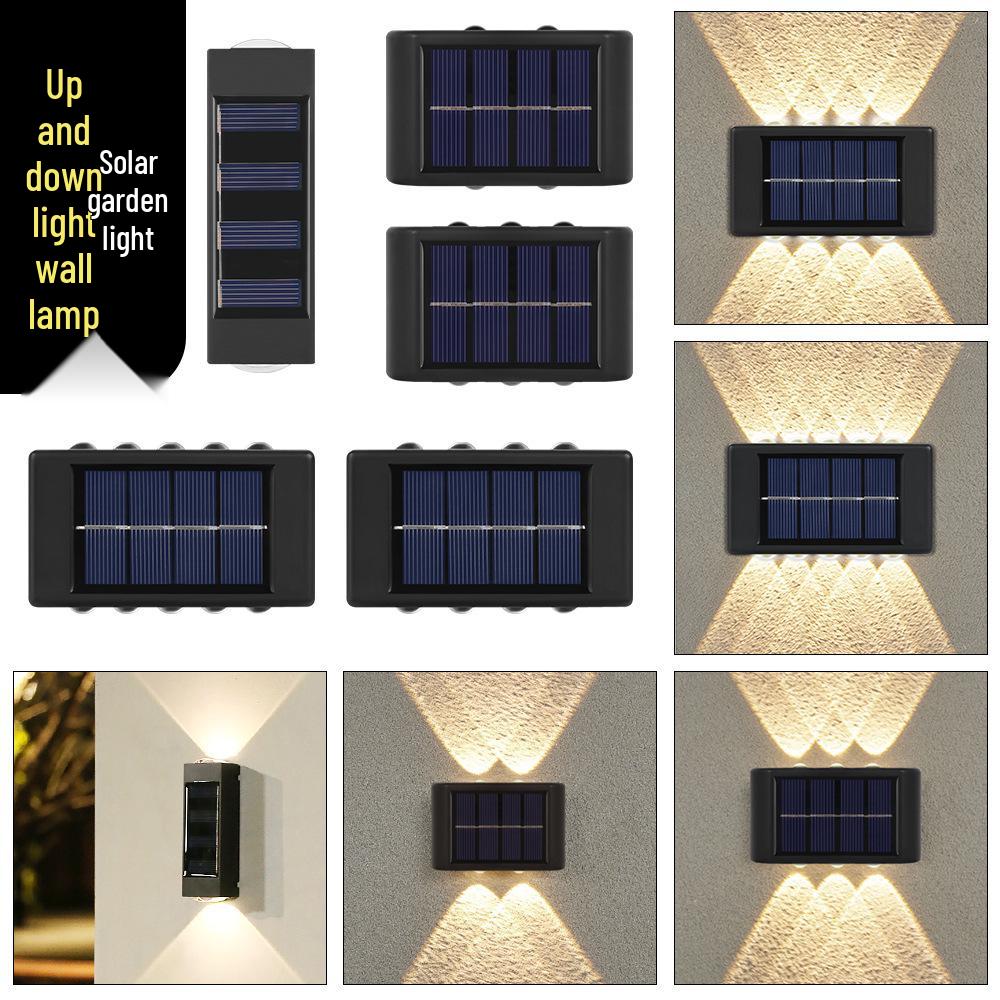 מנורת קיר חיצונית עמידה למים עם ראש כפול סולארי: פנס גן עולה/יורד עם קישוט זוהר