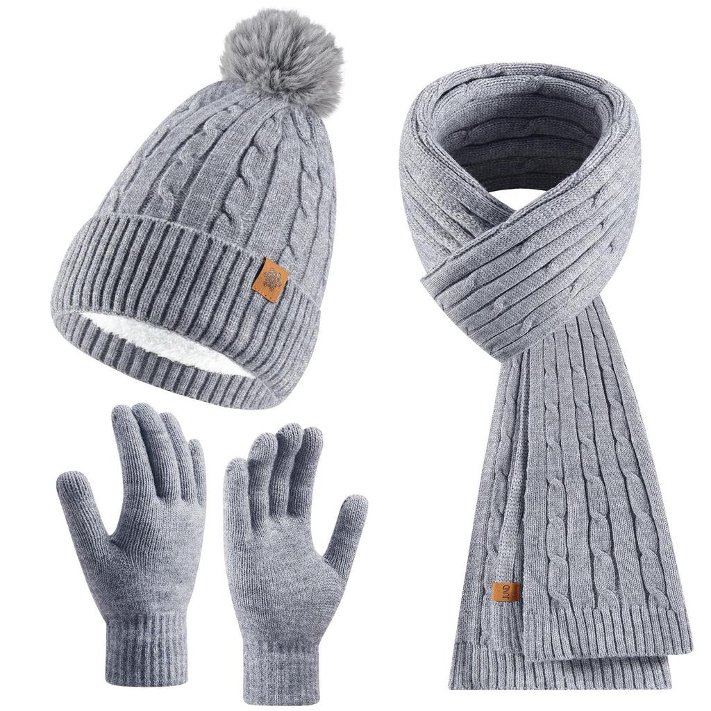 Women's Winter Knit Hat, Scarf, and Gloves Set - Double Layer Fleece Lined for Warmth