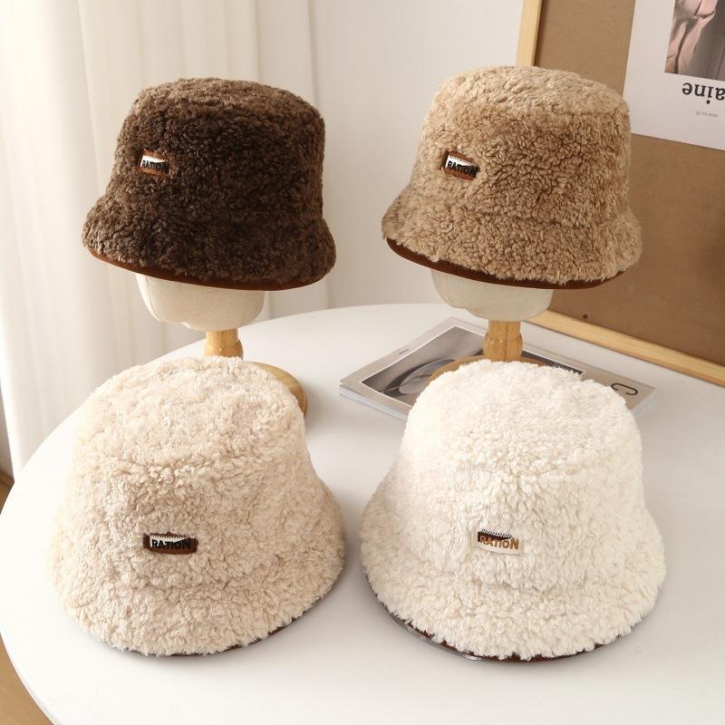 Bucket Hat Women Autumn and Winter Lamb Plush Cold Hat Thickened Warm Cold Basin Hat Fashion