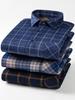 סתיו חורף חולצת צמר עיבוי גברים עסקים חולצה משובצת שרוולים ארוכים בגדים חמים מטה צווארון חולצות כפתורים קלאסיות