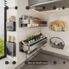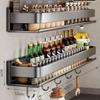 Organize your kitchen with the Bieying multi-functional wall-mounted rack. This modern aluminum alloy shelf features both no-drill adhesive and traditional screw-mount installation options. It includes a spice rack, knife holder, and hooks for added convenience, making it perfect for decluttering your countertop.