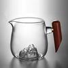 This elegant transparent glass fair cup is designed for household use to evenly distribute tea. Made from high-temperature resistant glass, it ensures durability and safety. Its unique smoky gray 'Snow Mountain' design adds a touch of sophistication to your tea ceremony. Perfect for serving tea to guests.