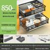 Optimize your kitchen storage with this modern stainless steel pull-out basket drawer. Designed for kitchen cabinets, it features a double-layer structure to maximize space. Included chopstick and cup holders offer convenient organization for your utensils. The durable stainless steel construction ensures longevity, while the brushed finish adds a touch of elegance to your kitchen decor. It is suitable for cabinets with a 500mm width and 410mm depth.