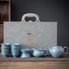Experience the elegance of traditional Chinese tea culture with the Xidi'en Ru Kiln Ceramic Tea Set. Crafted from fine ceramic in the distinctive Ru Kiln style, this exquisite set includes a beautifully designed teapot and a matching tea caddy, perfect for storing your favorite loose leaf teas. Presented in a luxurious gift box, it makes an ideal present for tea enthusiasts or a sophisticated addition to your own collection.
