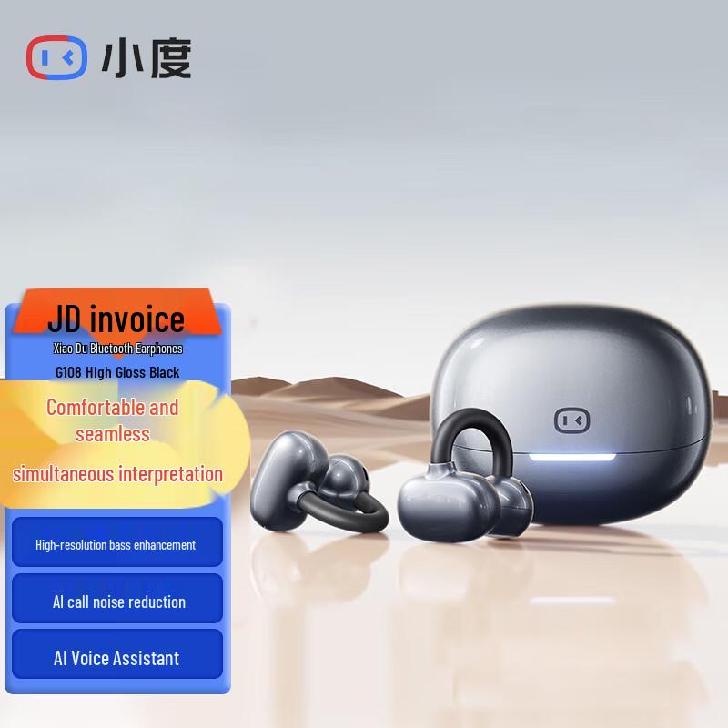 The Xiaodu G108 earbuds feature an innovative open-ear clip design, providing comfort and situational awareness for sports and daily use. Enjoy crystal-clear calls with AI smart noise reduction, immersive sound certified by Dolby Atmos, and universal compatibility. These wireless earbuds are IPX4 water-resistant and charge via Type-C.