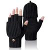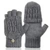 Men's half-finger flip gloves, covered gloves, sheep wool gloves, knitted thickened thermal and fleece finger gloves