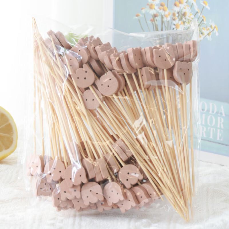 Disposable bamboo picks featuring an adorable panda head design, perfect for serving fruits, desserts, appetizers, or as tasting skewers. Add a touch of fun to any snack or party.