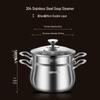 This versatile 304 stainless steel multi-purpose pot is ideal for boiling soups, cooking, and steaming. Designed for household use, it is compatible with gas stoves. The 24CM drum-shaped variant includes a convenient steaming grid.
