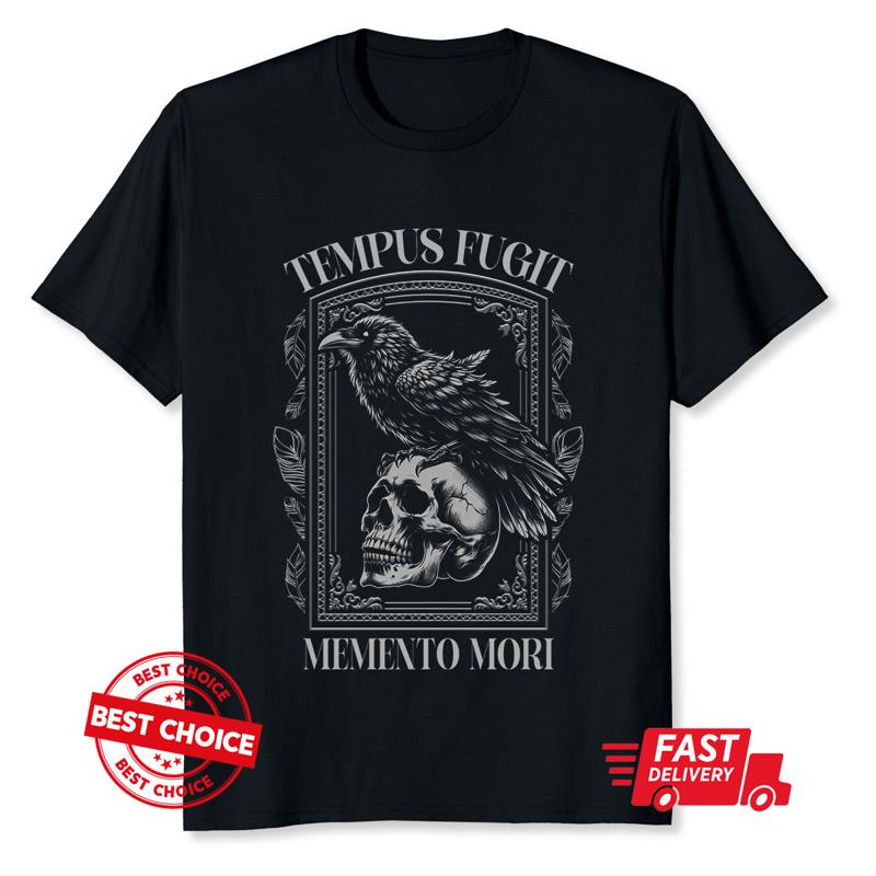Tempus Fugit Memento Mori גולגולת עורב ציפור חולצה S 3XL
