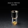 This elegant glass baijiu decanter features a convenient measuring scale, perfect for precise pouring and sharing. Crafted from durable glass with a machine-made finish, it's ideal for household use. The set includes two stylish 15ml gold foil bullet shot glasses to complete your drinking experience.