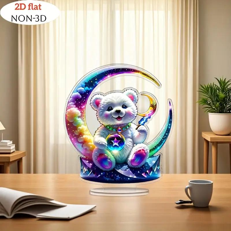 פסלון אקרילי של דוב ירח צבעוני עם בסיס - קישוט למדף ספרים, מעמד דקורטיבי לארון מטבח, שולחן משרדי