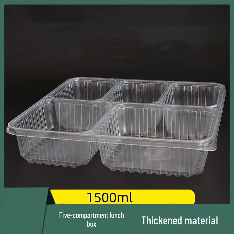 BOUSSAC 1500ml 5-Compartment Disposable Plastic Meal Prep Boxes