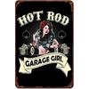 Vintage Pinup Girl Hot Street Rods Garage Full Service Route Auto Mechanics Metal Tin Sign for Rural Wall Decor Retro Poste
