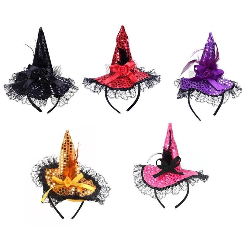 Children Kids Halloween Witch Hat Wizard Feather Headband Adult Costume Party Accessory Halloween Masquerade Cosplay Cap