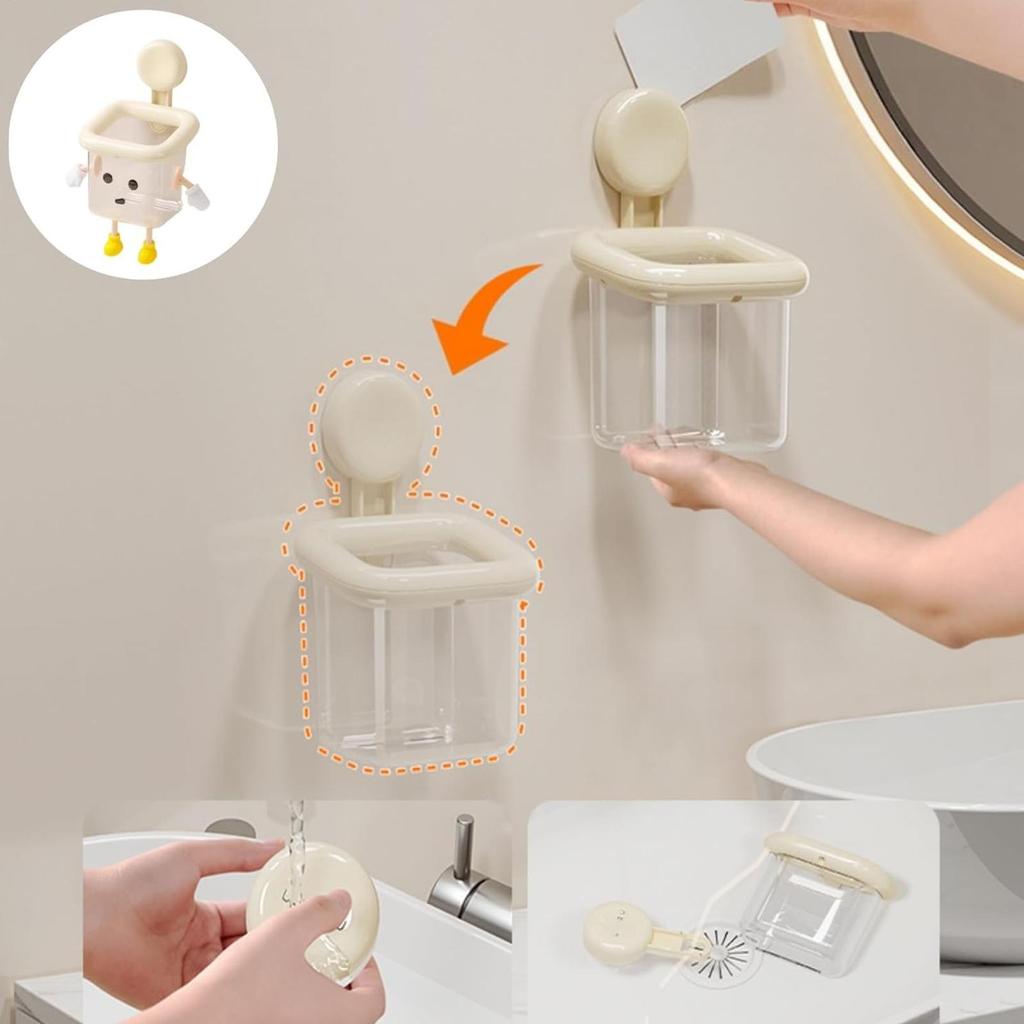 Cute Robot Suction Cup Storage Organizer Wall Mounted Rack with Bottom Water Outlet for Toothbrush Cosmetic Display
