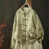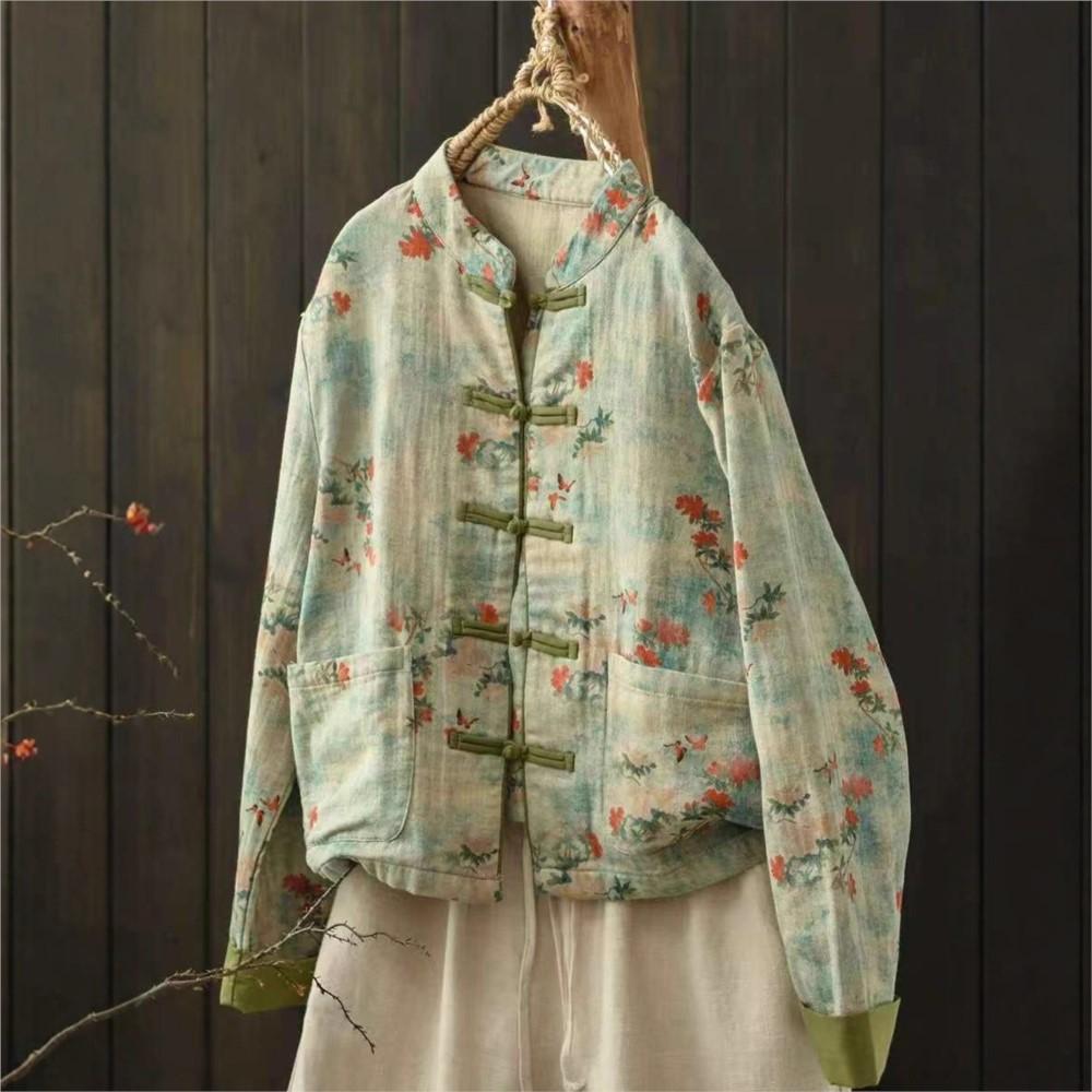 Johnature Women Vintage Print Floral Jackets Stand Long Sleeve Autumn Coats Loose Patchwork Pockets Chinese Style Jackets
