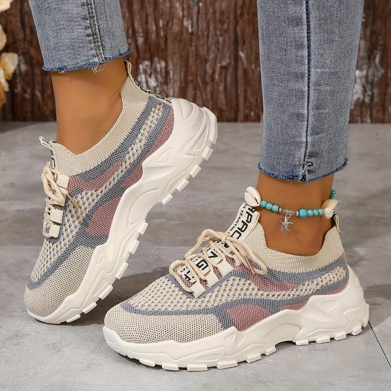 New Womens Breathable Mesh Platform Sneakers Comfortable Lace Up Outdoor Shoes