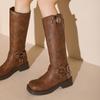 Retro Shoes, Women's Boots, Leather, Thick-heeled High Boots, Square-toed Sleeve Boots, Fashion Boots