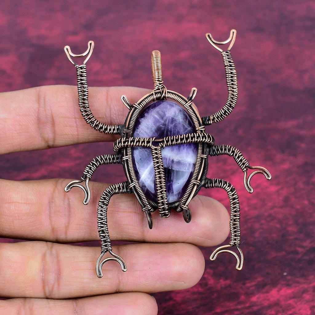 Chevron Amethyst Pendant Beetle Pendant Copper Wire Wrapped Gemstone Jewelry