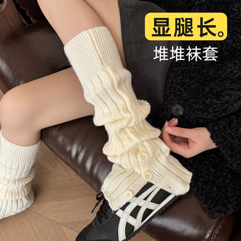 Stacked Socks Sock Cover Warm Thickened Leg Cover Show Leg Length Korean Draw Button Knitted Socks