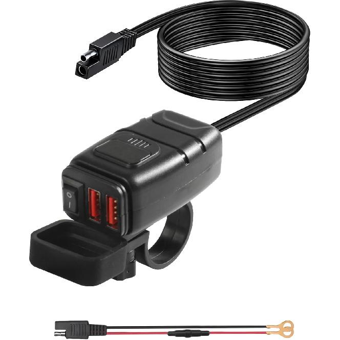 Motorcycle Phone Charger With Voltmeter & ON/Off Switch, SAE To USB Adapter For Phone, Tablet, GPS