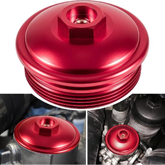 Fuel Filter Cap For Ford 6.0L Powerstroke Diesel 2003-2007 F250 F350 F450 F550 F650 F750 Excursion E150 E250 E350 E450 Billet Aluminum (Red)