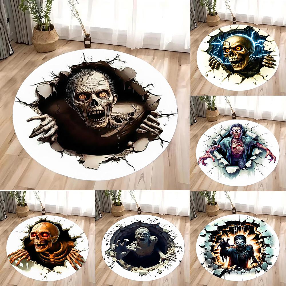 3D Halloween Horror Circular Carpet Doomsday Zombie Carpet Suitable for Bedroom Area Carpet Living Room Home Decoration Gifts