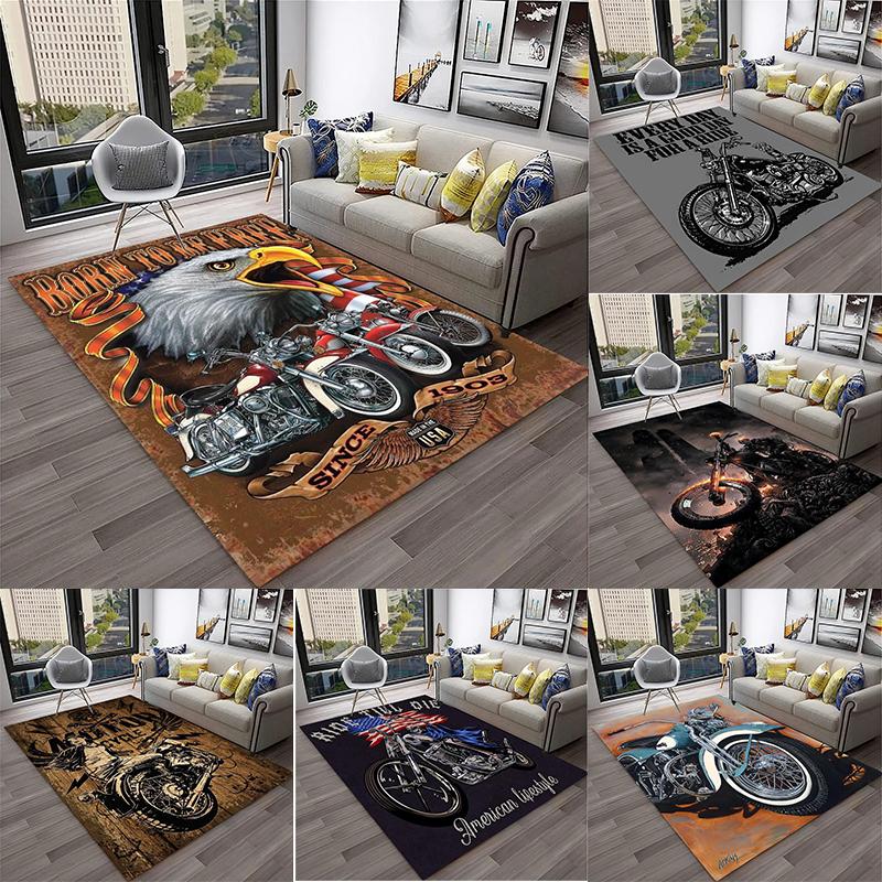 3D Visual Effect Classic Motorcycle Retro Carpet Rug Household Living Room Bedroom Playroom Sofa Entrance Mat Decoration