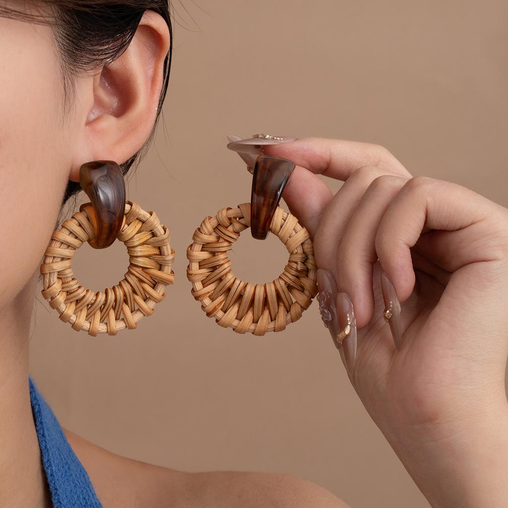 Bohemian Long Woven Hollow Circle Stud Earrings, High-End Exaggerated Earrings, Fashionable And Unique Temperament Earrings.