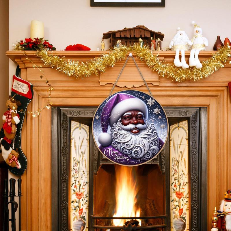Christmas Porch Sign Santa Round Wood Door Sign Christmas Welcome Sign Front Door Decor Christmas Round Hangable Sign Decor
