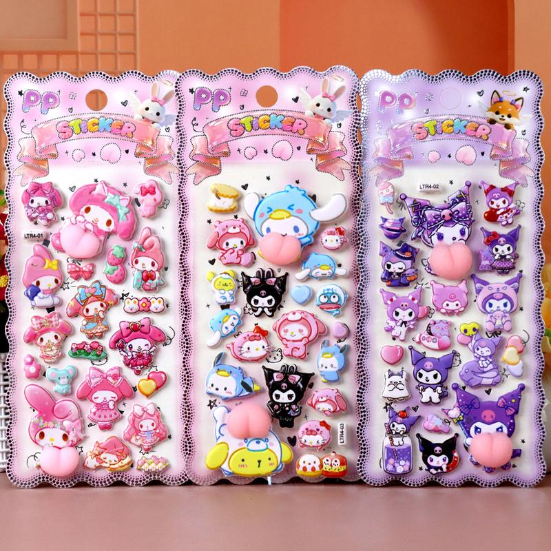 3pcs Cartoon Sanrio Butt Stickers Cute My Melody Kuromi Cinnamoroll 3d Relief Sticker Pinchable Decompression Toys Decals Gifts