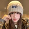 Korean version of cartoon puppy embroidery knitted hat female warm sweet cute versatile face small pullover hat tide