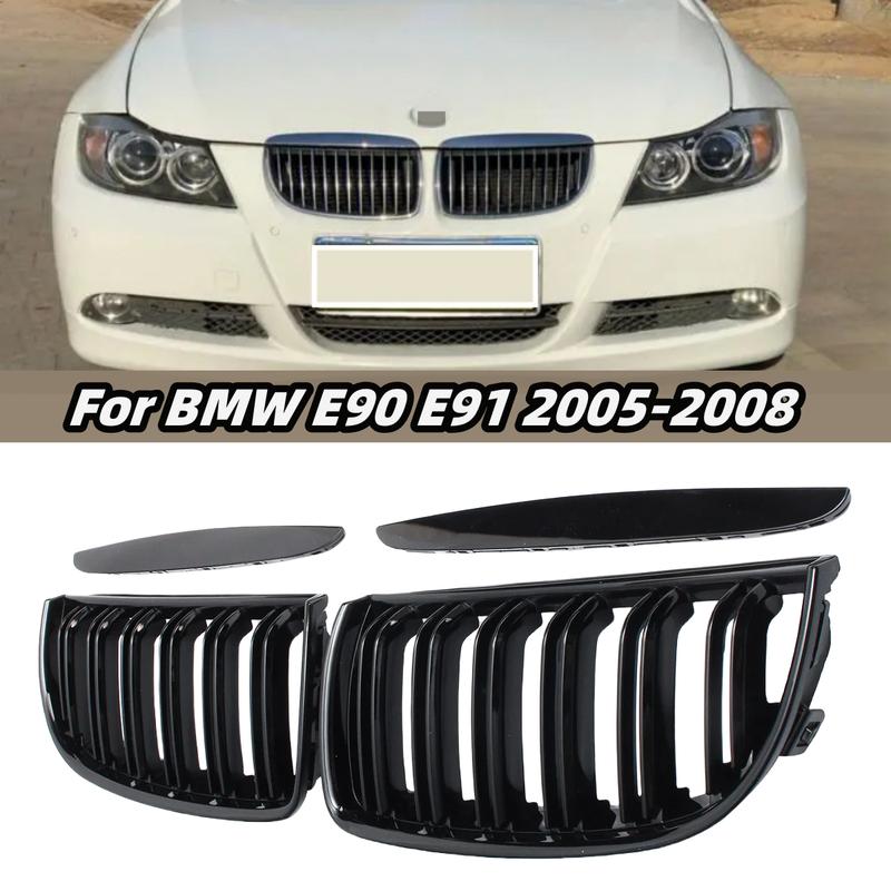 Pair Glossy Black Car Front Bumper Grilles For BMW E90 E91 3 Series 323I 328I 335I 330I 325I 05-08 ABS Grille Racing Grill