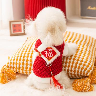 Embroidered Dog Fleece Vest Chinese Knot Buttons Warm Puppy Coat for Cats and Dogs