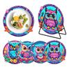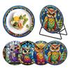 (Turtle/Owl A/Frog/Owl B/Butterfly A/Owl C/Butterfly B/Mandala)--Diamond Painting Placemats4 Pcs Wooden Diamond Painting Coasters with Holder Diamond Painting Placemats Round for Beginners Adults Art Craft Supplies for Table Decor