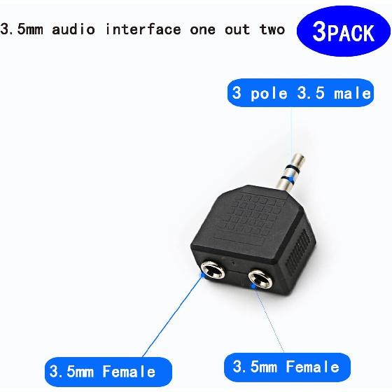 3.5mm Headphone Y Splitter, Gold Plated 3.5mm 1/8 inch Male to Dual Female Stereo Jack Adapter Converter,3-Pack