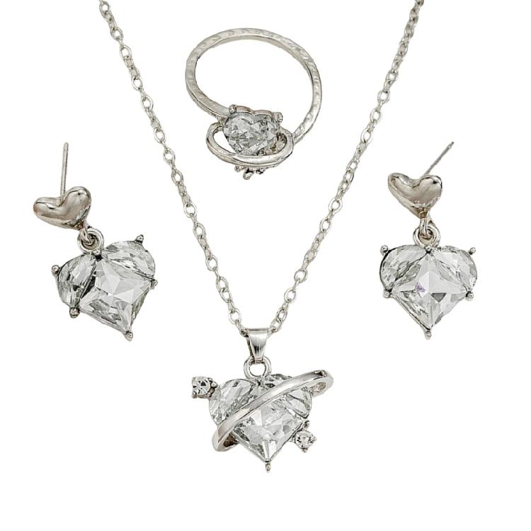 Elevates your accessory collection with this sparkling jewelry set that promises to add a touch of sophistication and love to any ensembles, making it important addition to your fashion finds.