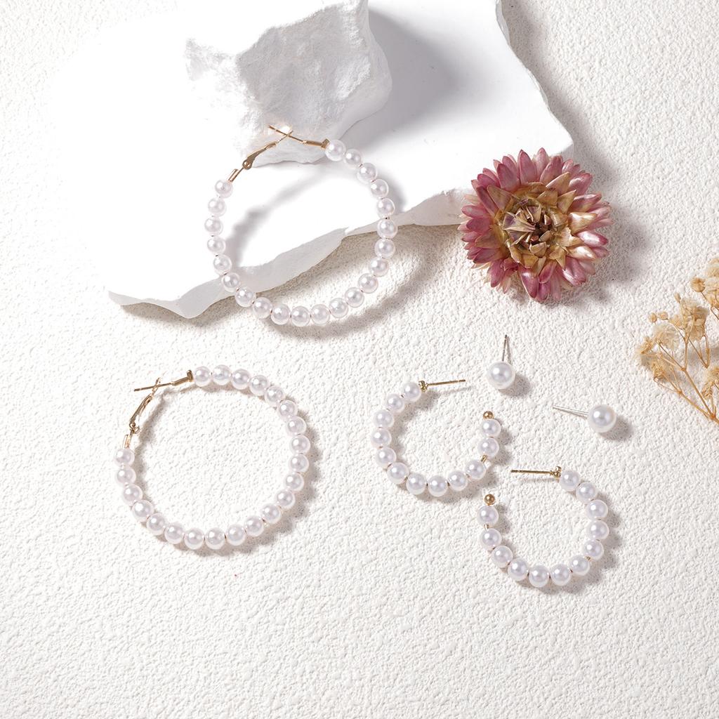 Simple Baroque Fashion Personality Geometric Three-piece Imitation Pearl Earrings Set Versatile Daily Commuter Women